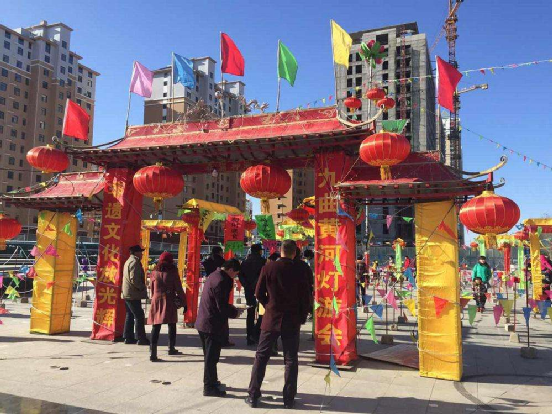 燈游會多在元宵節(jié)舉辦。舉辦燈游會的方法是:選擇約6O平方丈大的平坦廣場,栽置360根高約1.5米的木桿。木桿縱橫有序,形成九個方形燈陣,曰“九曲黃河陣”。每根本桿頂上安一 盞彩燈。燈陣中央栽一根10多米高的木桿,頂端置一盞最大最高的明燈,曰“老桿兒”。燈陣設有入口和出口兩個大門,九個燈陣的出口處各留一個小門。游“九曲黃河陣”者從入口進入,沿著布滿疑點的彎彎曲曲路線走下去,可游遍整個燈游會場。舊時傳說:人們游至“老桿兒”時,如擁抱“老燈桿,可消災免禍,增福添壽,吉祥如意。游者如果不知“九曲黃河陣”中的奧妙,轉來復去,象陷入迷魂陣一般無法走出,故驅(qū)使人們好奇而入,迷陣陷身,觀者大笑,趣味橫生。