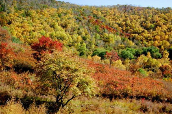 溝谷內(nèi)樹(shù)木蓊郁,植物種類(lèi)繁多,春夏草木爭(zhēng)榮、繁花似錦,秋季丹葉紅果,還有各種蕨類(lèi)植物,碧綠清新,更增添了溝谷景觀的幽靜、秀美。