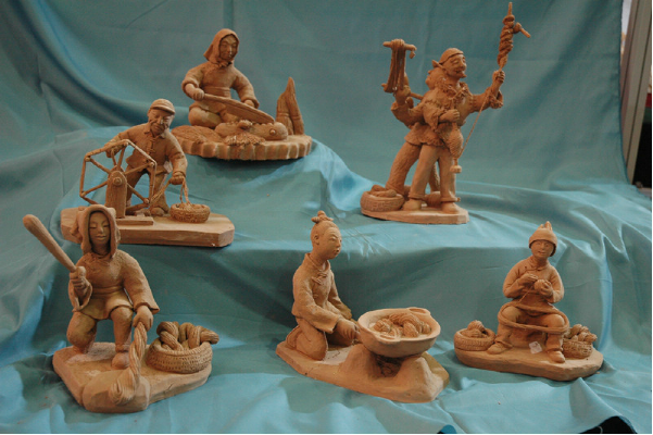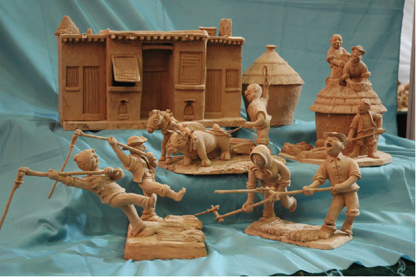 泥塑藝術(shù)是我國(guó)一種古老常見的民間藝術(shù)。它以泥土為原料,以手工捏制成形,或素或彩,以人物、動(dòng)物為主。不同的民間風(fēng)俗,流傳著很多動(dòng)人的傳說(shuō)故事,這些構(gòu)成了泥塑藝術(shù)的精神內(nèi)核。民間泥塑的用途主要有祈子延壽、納福招財(cái)、驅(qū)邪避災(zāi)和裝飾擺設(shè)等。泥塑成本低,費(fèi)工少,是老百姓喜聞樂見的藝術(shù)表現(xiàn)形式,它往往和節(jié)令、禮儀、風(fēng)俗聯(lián)系在一起,反映的是當(dāng)?shù)剞r(nóng)村人們?nèi)粘I畹牟煌瑘?chǎng)景,人物栩栩如生,場(chǎng)景鮮活生動(dòng)。