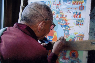 嘎瑪噶赤畫派,屬西藏東部地區(qū)畫派。相傳由郎卡扎西所創(chuàng),與其同時期的八世噶瑪巴米久多吉,奠定了嘎瑪噶赤畫派的理論基礎。十六世紀,嘎瑪噶赤畫派開始盛行康區(qū),先后涌現(xiàn)出了一批大師。嘎瑪噶赤畫派在發(fā)展過程中,由于生存地域與漢地緊密相連,在政治、經濟、文化上的交往也相對頻繁,尤其在繪畫方面,多受漢地明代以后工筆重彩畫和四川綿竹木版年畫的影響。嘎瑪噶赤畫派在嚴格繼承傳統(tǒng)繪畫的基礎上大膽創(chuàng)新,吸收漢族畫家工筆重彩之精華,注重抒情寫意之風格;講究色彩對比,結構嚴謹,畫工細膩,最后達到精美絕倫之境界。其總體風格形成了有別于衛(wèi)藏地區(qū)門唐、欽澤兩大畫派的特征。二十世紀初,噶瑪噶赤畫派藝術更為完善和成熟。