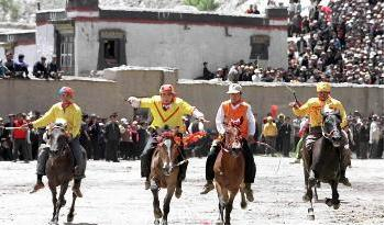 藏歷4月10日到28日,是江孜傳統(tǒng)的節(jié)日—達(dá)瑪節(jié),藏語(yǔ)意為跑馬射箭。據(jù)傳說(shuō)江孜法王繞丹貢桑帕巴桑布,是薩迦王朝的內(nèi)務(wù)大臣,又是江孜法王,在群眾中頗有威望。帕巴白去世后,他的弟子每年做祭祀,以示紀(jì)念。后因戰(zhàn)亂,祭祀中斷。至藏歷火鼠年(公元1408年)繞丹貢桑帕任江孜法王,遵其父貢桑帕的遺囑,恢復(fù)祭祀。這一年藏歷4月10日至4月27日,繞丹貢桑帕為其祖父念經(jīng)祭祀,直到28日,開始進(jìn)行娛樂(lè)活動(dòng)。內(nèi)容主要是曬唐卡畫、宗教文藝活動(dòng)等。除此之外,還有角力、跑馬、拋石頭等娛樂(lè)活動(dòng)。這些活動(dòng),全由法王的部下、兵丁、傭人承辦。從這年開始,固定這段時(shí)間為每年一度的祭祀盛典節(jié)日。到了扎西繞丹帕(公元1447年)統(tǒng)轄江孜的時(shí)候,娛樂(lè)活動(dòng)更為豐富,除上述內(nèi)容外,還增加了跑馬射箭。于是流行為盛大的江孜達(dá)瑪節(jié)。