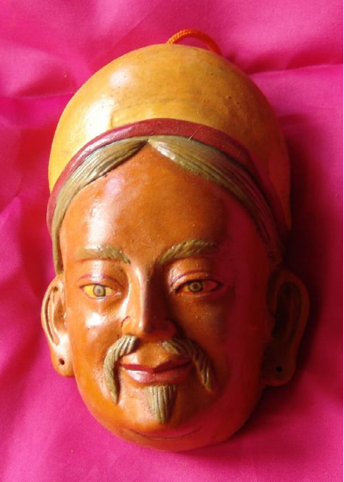 據(jù)普布次仁介紹,早在吐蕃王朝時(shí)期,西藏就有宗教舞蹈羌姆和名為“吉達(dá)吉姆”的歌舞劇?!凹_(dá)吉姆”在演出時(shí)演員要戴上白色面具,其表演的內(nèi)容是請(qǐng)求天神降雨或不要讓本地出現(xiàn)冰雹、刮大風(fēng)等自然災(zāi)害。這種歌舞劇在今天的日喀則地區(qū)仍然存在,人們常將之稱為“抗災(zāi)歌舞”。而在宗教舞蹈羌姆中,面具多數(shù)是根據(jù)佛經(jīng)及寺院殿堂中的塑像制作的,制作手法要求較高,以立體造型為主。