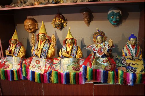 在普布次仁所在的公司里,有一個(gè)專門用來(lái)制作泥塑面具的房子,從外表上看去,它只是一個(gè)普普通通的藏式民居,但走進(jìn)其中,則別有一番天地。在房間里整齊擺放了大大小小的泥塑面具、佛像,這些手工藝品造型生動(dòng),每一件手工藝品仿佛都在訴說(shuō)著一個(gè)古老、動(dòng)人的故事。