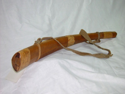 簡介:鄂溫克族牛角形帶箍木質(zhì)鹿哨,長71厘米,紅松木質(zhì)地,1946年制作,鄂溫克族傳統(tǒng)擬聲狩獵工具,也作為樂器。征集于內(nèi)蒙古自治區(qū)喀爾古納左旗,藏于民族文化宮博物館。鹿哨是中國北方及東北亞狩獵經(jīng)濟(jì)文化類型的重要實物遺存,有鮮明民族與地域特色。[詳細(xì)]