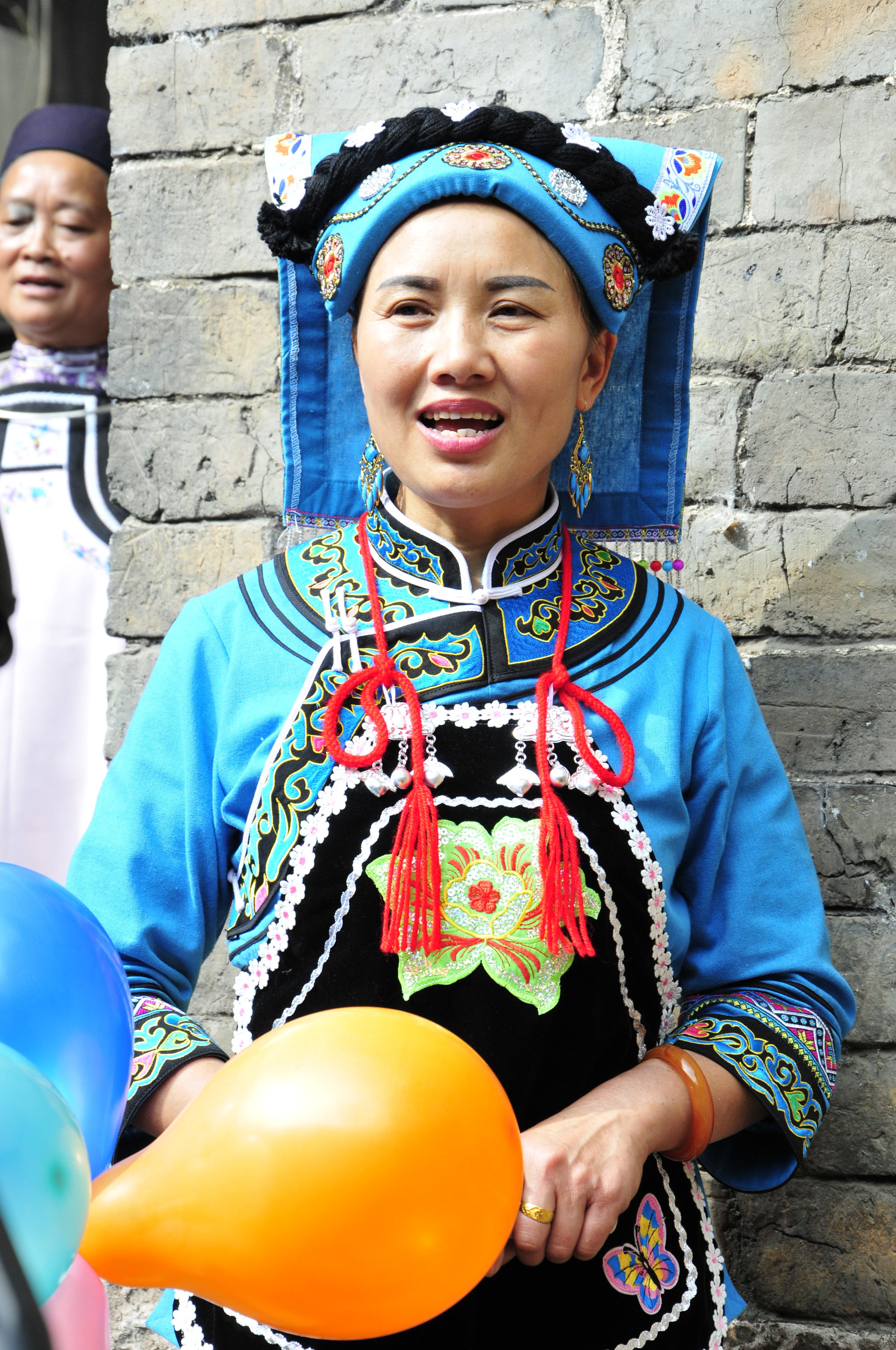 貴州貴陽(yáng)苗族女子服飾花帶百褶裙