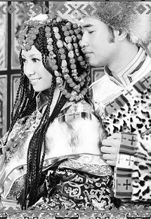 藏式婚禮上,身穿盛裝的一對新人