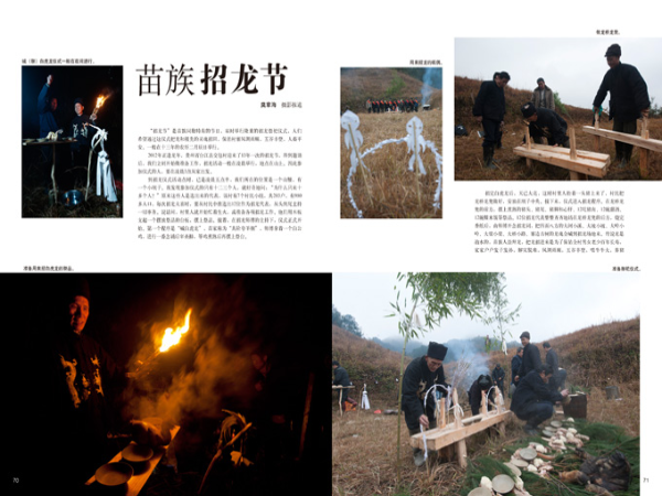 “招龍節(jié)”是苗族同胞特有的節(jié)日,屆時舉行隆重的招龍祭祀儀式,人們希望通過這儀式把龍和祖先的靈魂招回,保佑村寨風調雨順,五谷豐登,人畜平安。一般在十三年的農(nóng)歷二月辰日舉行。
