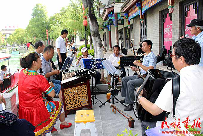 民樂隊是古鎮(zhèn)清明河畔一道靚麗的風景