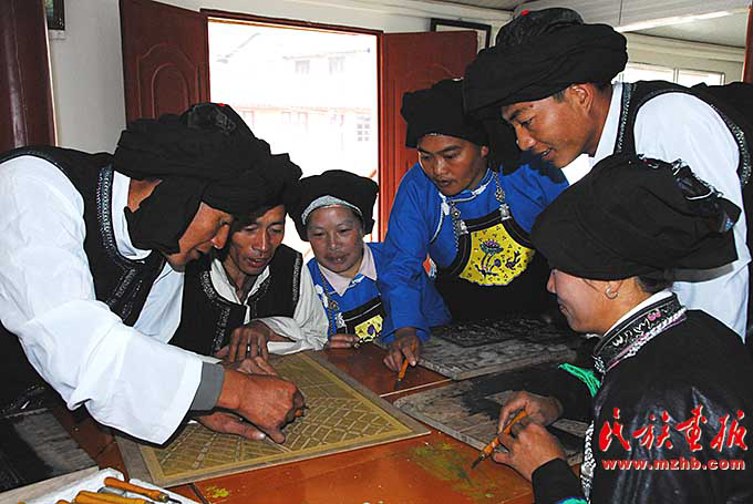 為了提升作品質(zhì)量,阿峨新寨村的版畫創(chuàng)作者邀請專家對其進行藝術(shù)指導(dǎo)