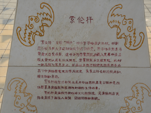 房子煙囪的設(shè)置在東、西山墻外,煙囪距房子0.6米左右,用青磚或土坯砌成,有圓形、方形兩種。院周圍用木柵欄,或用磚、土砌成圍墻。大門多設(shè)門樓或門房。院內(nèi)設(shè)有影壁墻。影壁墻后側(cè)立有“索倫桿”。院內(nèi)東西廂房南面修有牛棚、馬棚、車棚和儲存谷物糧倉。滿族人講究衛(wèi)生,室內(nèi)外都收拾得干凈利落,物品放置井井有條,柴禾垛得立立整整。