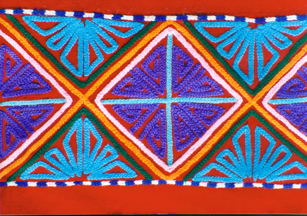 哈薩克族的馬褡子是用自制的毛線手工編織而成的,上面會(huì)用不同顏色的線編織成各種各樣的圖案,樸素大方,結(jié)構(gòu)嚴(yán)謹(jǐn),大都是幾何圖案或花紋,然后配以色彩協(xié)調(diào)的粗獷線條。哈薩克族人民往往喜好使用強(qiáng)烈的對(duì)比色,足以充分地體現(xiàn)哈薩克族牧民的藝術(shù)愛(ài)好和審美情趣。