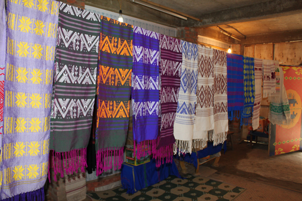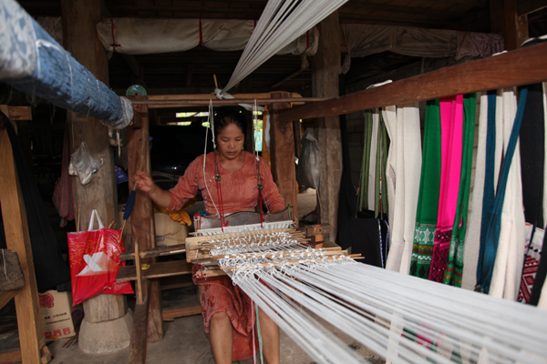 云南傣錦歷史悠久,風(fēng)格古樸,以其織工精巧、圖案別致、色調(diào)鮮艷、堅牢耐用和富有民族特色而著稱。它主要流傳和盛行于云南省南部的西雙版納傣族自治州,西南部的德宏傣族景頗族自治州、耿馬傣族佤族自治縣、景谷傣族彝族自治縣,以及孟連傣族拉祜族佤族自治縣等傣族較聚居的區(qū)域。云南傣錦是一種以絲線、毛線、棉線、麻線、晴綸線、金絲線等材料為原料,采用傣族傳統(tǒng)的木架織機手工操作,經(jīng)提花、織造等工藝形式制作成的長條形織錦物,是云南的傣族人民從事宗教活動和美化生活必不可少的物品。傣錦長短不一,幅寬一般為20-60厘米不等。因其花紋絢麗多彩、形象生動、變化多端 、呈立體形,在云南少數(shù)民族織錦中獨樹一幟,享有很高的聲譽。傳統(tǒng)的云南傣錦按構(gòu)成形式和材料主要有兩種即西雙版納傣錦和德宏傣錦。西雙版納傣錦以白色為底,用紅色和黑色緯線織成花紋,傣錦線條寬窄有致,形體夸張簡練,圖案較為規(guī)律化,具有粗獷的質(zhì)樸感和濃厚的裝飾性;而德宏傣錦則色調(diào)較為濃重,常用黑、紅、翠綠、黃、藍等濃艷色彩的絲線和棉線摻用金絲錦線織制,圖案以菱形、方形、六角形及回形紋等幾何形為主,織錦鮮艷奪目,結(jié)構(gòu)嚴謹,紋飾古雅,尤顯華麗。