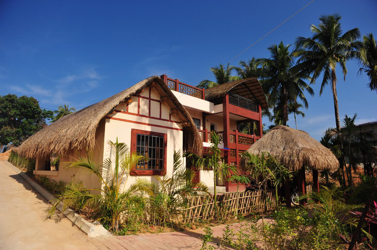 黎族民居有“干欄式”住房、船形屋、仿漢式金字屋和磚瓦房等幾種形式。除磚瓦房外,其他幾種住宅的建筑材料均采用本地區(qū)的各種硬木、堅竹、韌藤、野麻和茅草,均屬于海島最佳的隔熱材料。房屋的柱子、直梁、檁條和椽子互相牽連,成為一個整體,可以抵抗狂風(fēng)暴雨,非常結(jié)實?!案蓹谑健贝挝菔抢枳迦嗣窆爬系淖≌?。可根據(jù)離地高低分為高欄屋和低欄屋。“船形屋”平面結(jié)構(gòu)呈縱向延伸,屋頂與檐墻合一,狀如船篷。屋前有一大門廊,既可堆放雜物,做家務(wù),又可以休息。整個房屋建筑無間隔、不開窗,房門開在山墻處。室內(nèi)設(shè)右三足灶。仿漢式金字屋主要分布在臨近漢區(qū)或黎漢雜居地區(qū),是黎族人吸取漢人住宅的優(yōu)點改造而成的。呈橫向長方形,前后植墻升高,在檐墻處開門、窗、檐前廊子寬大。有的地區(qū)在金子屋的側(cè)面山墻或后檐墻開正門。