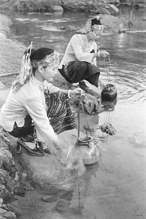 據(jù)說過去的黎家風俗是新娘挑滿水缸后,就與新郎、伴娘一起到河里網(wǎng)魚、摸螺。邊摸螺,邊唱山歌。伴娘和姐妹們會把新郎拉來嬉水,伴郎與阿哥們也不甘示弱,也向伴娘和姑娘們嬉水,你澆過來我澆過去,姑娘小伙樂陶陶。因此,保亭黎族嬉水節(jié)便是從婚俗引發(fā)出來的又一歡樂節(jié)日。