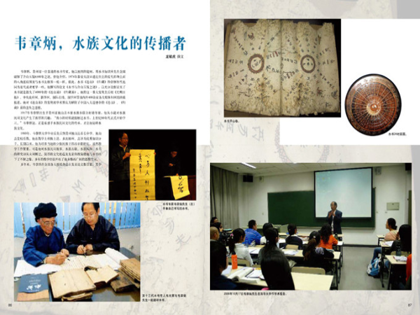 多年來,韋章炳在全國各大報紙雜志上發(fā)表論文數(shù)百篇,其中《水族背帶——遠古的馬尾繡藝術(shù)》《水族族源探析》和《解讀華夏奇書——水書》《水書在唯物視野中的價值作用》等研究成果在學術(shù)界引起廣泛關(guān)注。特別是《水書在唯物視野中的價值作用》論述了水族文化在維系自然生態(tài)、維系社會和諧、維系人際德行上的一貫作用,并指出古代水族文字的創(chuàng)造為后來許多文化的產(chǎn)生提供了一個范例作用的觀點,得到學術(shù)界的一致好評。因此,他成為中國民俗學會會員、貴州省水家學會常務(wù)理事。