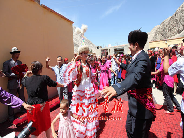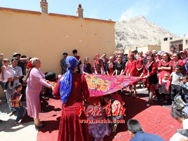 新郎買(mǎi)買(mǎi)提義薩克·阿布都薩拉木與新娘齊曼古麗·買(mǎi)買(mǎi)提艾孜木