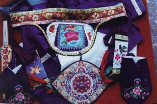 “鳳凰點(diǎn)頭裙子飄,三寸金蓮顯婀娜”。這是民和土族服飾的真實(shí)寫照。土族婦女的服飾,不但燦爛華麗,其刺繡技藝之高,做工精致考究令人嘆為觀止。