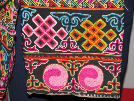 土族的刺繡堪稱一絕,是我國(guó)少數(shù)民族刺繡藝術(shù)中的一朵奇葩。土族刺繡所用的布料有絲綢、斜紋布、條絨布、自制手紡棉粗布、絨毛布等,為襯托色彩絢麗的線繡圖案,布料顏色以黑、紅、藍(lán)三色為主。繡線有棉線、絲線、銅絲線和金銀捻線等。常用的繡法有平繡、盤繡、鎖繡、切針繡、剪貼繡等。土族的刺繡品種多樣,構(gòu)圖飽滿,色彩艷麗,多用在腰帶、衣領(lǐng)、筒袖、鞋面、煙袋等衣物和裝飾品上?;ブぢ橐粠У耐磷迥星嗄晷厍按蠖加袎K四寸方連續(xù)圖案,叫“富貴不斷頭”。土族女子到七八歲就開始跟著母親、姐姐等學(xué)習(xí)刺繡藝術(shù),等到了十七八歲就練就出一手好針線活了。到了節(jié)慶集會(huì)的時(shí)候,土族婦女會(huì)拿出自己的刺繡精品,展示自己的刺繡藝術(shù)。未婚姑娘非常珍愛(ài)自己的刺繡品,如果有哪位小伙得到了姑娘的刺繡品,就相當(dāng)于得到了她的芳心(劉軍供圖)。