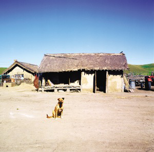 達(dá)斡爾族民居最有特色的是西側(cè)或東側(cè)的倉房。最早的是垛木倉房,現(xiàn)在看到的大多是柞木杖子里外抹草泥的倉房。倉底被墊起半米左右,以隔潮通風(fēng)。里面有隔欄,能存放幾種原糧,隔欄和倉底用麻絲和黃泥抹嚴(yán)。倉房前墻縮回房檐半米多,高出地面的倉底就成了曬臺(tái),可放馬具、農(nóng)具,夏天曬干菜,既避風(fēng)又防雨。與倉房連在一起的是敞開的棚子,用以停放馬車和雜物。如今,大都停放四輪拖拉機(jī)了。