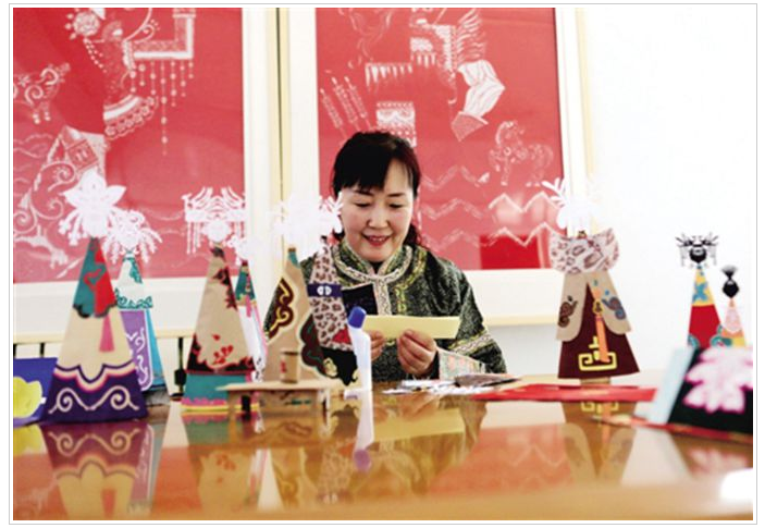 多年來,她深入達(dá)斡爾族老區(qū),向老藝人學(xué)習(xí)求教,搜集、整理民族和民間文化遺產(chǎn)。特別是在達(dá)斡爾族傳統(tǒng)剪紙、哈尼卡紙偶制作和民族服飾的研究和創(chuàng)作上傾注了大量心血。