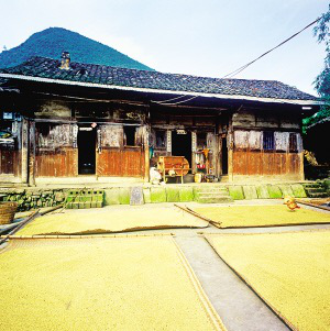 聚居石阡的仡佬族民居為不封閉的院落式,即三合院式。主房是建在高臺(tái)基上的瓦房,兩側(cè)廂房是干欄式吊腳樓,樓下為畜圈、存燒柴處,樓上住人,放置糧食和雜物,所形成的院落都鋪著石板,以利秋收時(shí)作曬場(chǎng)。