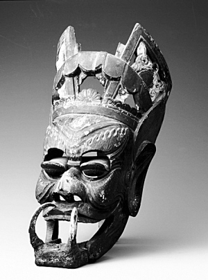 儺面具“山王”是眾多儺面具中的一面。儺面具多為木質(zhì),因它與宗教的緊密關(guān)系,在其制作過程中,融入了制作者的虔誠(chéng)信仰和精湛技藝,成為木雕工藝在民間的卓越代表。