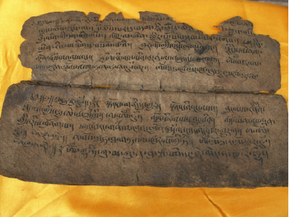 一般認為普米族沒有本民族文字,但歷史上普米族曾使用過簡單的圖畫文字,這是一種萌芽的原始刻畫文字,見于房屋壁畫、神龕、法器、房梁等地?,F(xiàn)學界說的“韓規(guī)文”是以藏文字母為基礎,用以記錄普米語的文字符號。韓規(guī)文主要用于抄寫宗教祭祀經(jīng)文,認知度不高,一般只有普米族的巫師“韓規(guī)”才能掌握使用(圖為韓規(guī)文經(jīng)書殘片,蒙哥提圖)。普米族現(xiàn)今有一套拼音文字,該套拼音文字以寧蒗彝族自治縣新營盤鄉(xiāng)牛窩子村的普米語為基礎音,在寧蒗普米傳統(tǒng)文化保護協(xié)會及香港大學丁思志教授的努力下,經(jīng)修訂的拼音文字最終面世,并且有了普米語教材。普米族拼音文字設計的構想最早是在1995年由香港大學大學丁思志教授提出,同年,普米語聲母表首稿完成。該方案歷經(jīng)修改,最終的方案共收錄42個聲母,能夠滿足各地普米方言的使用需求。近年,丁思志教授又創(chuàng)制了一套有別于拼音文字的新創(chuàng)文字。新創(chuàng)文字是一種表意文字,該套文字以牛窩子普米語為基礎音,以漢字表意,輔之以自創(chuàng)的虛詞而成,從一定程度上超越了普米語言空間限制,解決了不同普米方言區(qū)因為口音差異而形成的交流障礙。