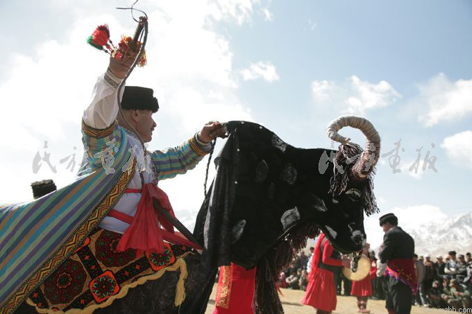 塔吉克族另一種獨具特色的舞蹈木偶舞,俗稱“乖孩子”。 塔吉克族人口少,喜愛孩子,所以木偶的形象多為小孩。舞者左手持小木棍,并把它裝縶成懷抱著的小男孩,右手撫摸哄逗,載 歌載舞,非常有趣。木偶舞的傳統(tǒng)劇目有《商人與馬》、《心愛的寶寶》、《叨羊》等,劇中還會使用到木馬、耗牛、羊等造型 的道具,表演形式近似漢人的“跑旱船”和“跑驢”。演員的下半身是布簾扎成的馬、牛身體,前有馬牛首后有尾,以夸張模樣的木偶來邊喝邊舞,表現(xiàn)形式活潑幽默,深受人民喜愛,是塔吉克族民間傳統(tǒng)娛樂的方式。