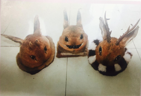 在鄂倫春族內(nèi),男人一般佩戴角長的狍角帽,女人和兒童佩戴無角或小角的狍角帽。所戴狍角帽均有補(bǔ)花繡出的狍子雙眼。兒童所戴的帽子會由補(bǔ)花繡出的鼻子和嘴等造型,生動形象。但現(xiàn)今的兒童帽上一般不會配有垂飾的紅穗,只用松緊皮筋釘于帽檐的左右兩側(cè),方便兒童戴帽子。制作兒童狍角帽的材料為春季的小狍頭皮,這一時(shí)期的袍子耳朵大,角剛露出頭頂,毛茸茸的,整個(gè)頭型看起來很稚氣,既暖和又美觀,所以鄂倫春兒童戴上這種帽子就要比成年人顯得活潑、可愛。而且造型更加逼真。
