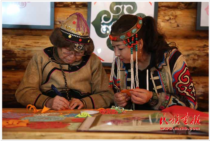 在烏力楞景區(qū)“非遺”傳承基地,游客在親身體驗民族文化的魅力