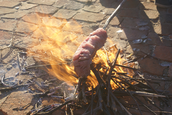 在漁獵經(jīng)濟(jì)時(shí)代,獸肉也是赫哲族人民日常食物的重要組成部分。狍子、野豬、鹿、熊是赫哲族主要的獵取獵物,這些獵物是赫哲族肉食的主要來源。獸肉除燉著吃、烤著吃以外,還可以曬成肉干儲存起來,以備日后食用。
