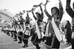 2014年2月6日,云南西雙版納傣族自治州景洪市基諾山鄉(xiāng)人頭攢動,歡聲笑語。來自四面八方的賓客云集在大鼓舞廣場,與基諾族同胞一起歡度“特懋克”節(jié)。