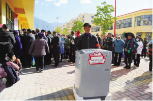 在社區(qū)的樹新風(fēng)積分超市前,居民們排起整整齊齊的長隊,不由得讓人好奇。