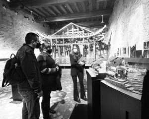 2021年5月,第17屆威尼斯國際建筑雙年展官方平行展“兩河口,一個(gè)土家會(huì)聚之地的再生”在威尼斯禪宮與宣恩縣兩河口村同時(shí)連線開幕。圖為威尼斯禪宮展覽現(xiàn)場。 閔天怡供圖