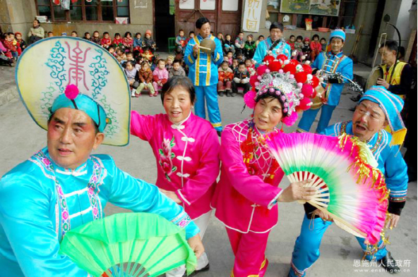 利川燈歌,又名燈調(diào),始于清代初期,已有300多年的歷史,是人們逢年過節(jié)之時以彩龍船為道具,畫地為臺、亦唱亦演的民間藝術(shù)形式。2011年5月,利川燈歌被國務院公布為第三批國家級非物質(zhì)文化遺產(chǎn)名錄。