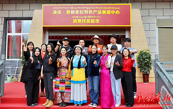 2020年7月,何永群(前左四)在迪慶·香格里拉特色產(chǎn)品展銷中心消費(fèi)扶貧超市參加活動。