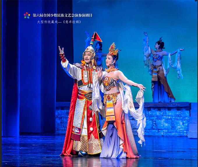 9月14日,作為第六屆全國少數(shù)民族文藝會演參演劇目,由青海省選送、青海省藏劇團(黃南藏族自治州民族歌舞劇團)創(chuàng)作演出的藏戲《意卓拉姆》在央視網(wǎng)和國家民委門戶網(wǎng)站進行演播。該劇講述了傳說中的仙女意卓拉姆與人間的諾桑王子相愛,歷經(jīng)挫折與磨難后終成眷屬的愛情故事,表現(xiàn)出意卓拉姆對愛情的忠貞不渝和諾桑王子堅韌不拔的意志。