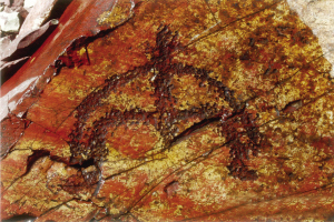 彩繪巖畫作為南系巖畫的主要代表類型,在寧夏境內(nèi)并不多見,僅在石嘴山白芨溝的一處坐北朝南的天然洞窟中發(fā)現(xiàn),巖洞敞開,可容納數(shù)百人。被發(fā)現(xiàn)的彩繪巖畫分布在高8米、長10米的崖壁上,坐西向東,以赭石顏料涂繪,有24組42幅精美的巖畫,內(nèi)容包括狩獵、騎者、牧歸,以及牛、羊、馬、狗等動物。這些罕見的彩繪巖畫時至今日依然是“養(yǎng)在深閨人未識”,更讓人擔(dān)心的是隨著環(huán)境污染造成的自然破壞已經(jīng)讓這些彩繪巖畫顏色發(fā)白,亟待引起重視,加以保護(hù)。