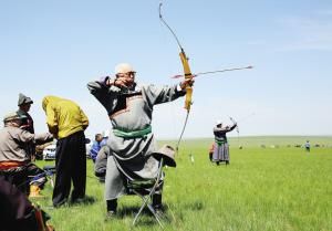 射箭是借助弓的彈力將箭射出,分為射遠(yuǎn)、射準(zhǔn)。最早用來狩獵,之后用于戰(zhàn)爭,最后才成為體育運(yùn)動(dòng)。在蒙古高原的很多巖畫里,都有射箭的圖案。與馬的馴服使用一樣,弓箭的使用增加了人類征服自然的威力和自信。