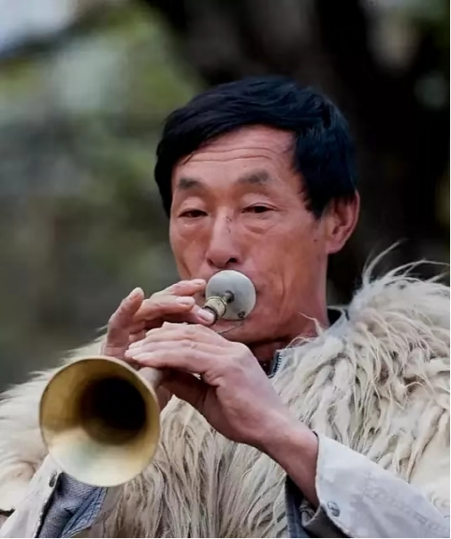 穿著羊皮褂子吹嗩吶,也成了松鶴嗩吶藝人的標準形象。