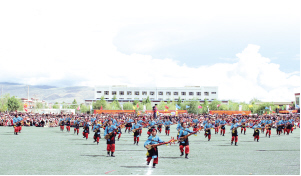 走進拉孜鎮(zhèn)中心小學(xué),伴隨著課間操音樂,孩子們或旋轉(zhuǎn)或跳躍,朝氣蓬勃。作為西藏自治區(qū)首批“非遺特色縣”,拉孜縣將非物質(zhì)文化遺產(chǎn)拉孜堆諧改編成堆諧操,并在校園推廣。