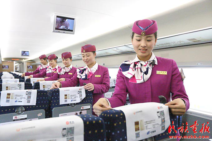 擔(dān)任貴陽至昆明高鐵值乘任務(wù)的“動妹”們進行系列安全演練和培訓(xùn),確保為旅客提供優(yōu)質(zhì)服務(wù)(張貴忠 攝影)