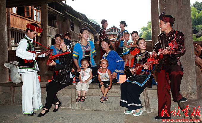 苗族姑娘韋夢迪說:“現(xiàn)在人們生活水平提高了,活動的內(nèi)容也越來越豐富。活動現(xiàn)場的姑娘若對小伙子有好感,跟過去情況也不一樣了,只要人好就行?!绷侄创迮嗫仆屠先撕喂疰灿幸粯拥母惺埽骸坝浀靡郧靶〉臅r候‘打同年’就是吹蘆笙、跳踩堂舞、對歌,現(xiàn)在‘打同年’活動越來越豐富,還增加了籃球賽、拔河比賽、聯(lián)歡晚會等很多節(jié)目。”每年寒假回家都要參加“打同年”的廣西大學(xué)學(xué)生潘金鑫來自融水縣懷寶鎮(zhèn),他說:“通過開展吹蘆笙、踩堂舞、文藝表演等傳統(tǒng)文化活動,加深了大苗山黨群干群之間、村寨各族同胞之間的情誼,增進了民族團結(jié)。我自己也特別能感覺到家鄉(xiāng)的發(fā)展變化,這讓我很自豪?!?/p>