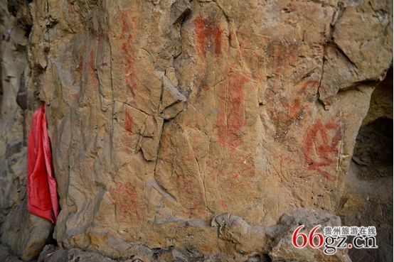 同時(shí),在金山洞壁上的清代壁題也數(shù)量眾多,既有題詩(shī),又有紀(jì)事,還有祝文,分別題于清乾隆、道光、咸豐年間。明顯可見“貴州貴陽(yáng)府”和“貴陽(yáng)府廣順州”等字樣。還有1949年以后的毛主席語(yǔ)錄,均以赭色書寫。據(jù)說(shuō)時(shí)至今日,仍有村民在巖下洞口焚香秉燭,寄拜巖神,祈禱康健。現(xiàn)在在巖石上還能看到祈福的紅布和被煙火熏黑的巖洞。