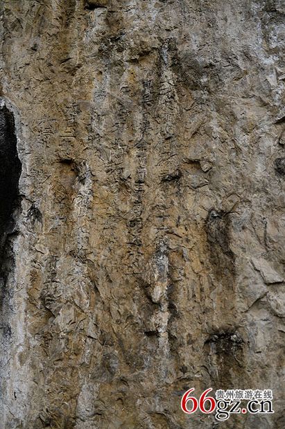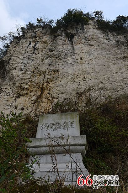 金山洞摩崖是貴陽(yáng)市花溪區(qū)最早的摩崖石刻,也是貴州最早的摩崖石刻之一。該摩崖石刻位于燕樓鄉(xiāng)東北三里的金山洞巖壁上。其山上豐下儉,古人利用自然山形,在可避風(fēng)雨的洞壁上摩巖、題刻賦詩(shī)作畫。整個(gè)摩崖面積通高140厘米,寬74厘米;自右至左豎行排列,共6行82字。據(jù)系楷書陰刻,書法古樸流暢,具有較高的歷史價(jià)值。