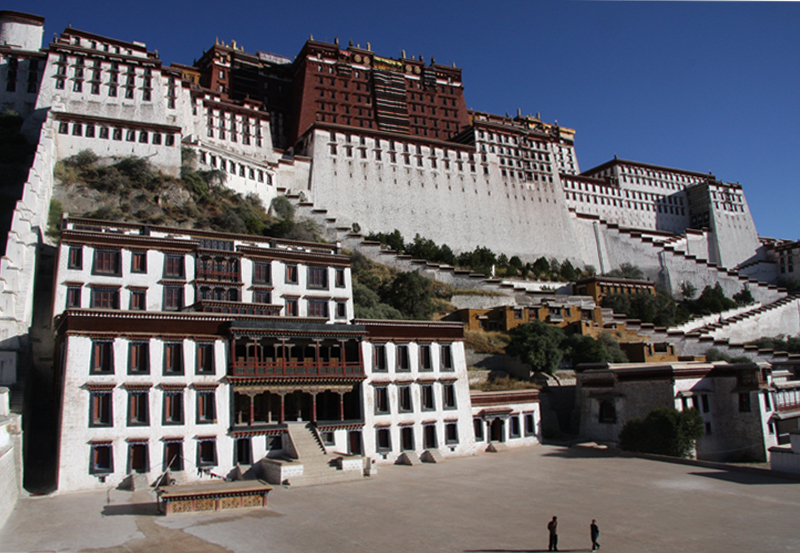 布達(dá)拉宮還有一些附屬建筑,包括山上的朗杰札倉、僧官學(xué)校、僧舍、東西庭院和山下的雪老城及西藏地方政府的馬基康、雪巴列空、印經(jīng)院以及監(jiān)獄、馬廄和布達(dá)拉宮后園龍王潭等。