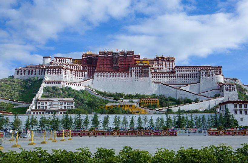 布達(dá)拉宮在西藏拉薩西北的瑪布日山上,是著名的宮堡式建筑群,藏族古建筑藝術(shù)的精華。宮堡依山而建,宮體主樓13層,高115米,全部為石木結(jié)構(gòu),5座宮頂覆蓋鎦金銅瓦,金光燦爛,氣勢雄偉,是藏族古建筑藝術(shù)的精華。