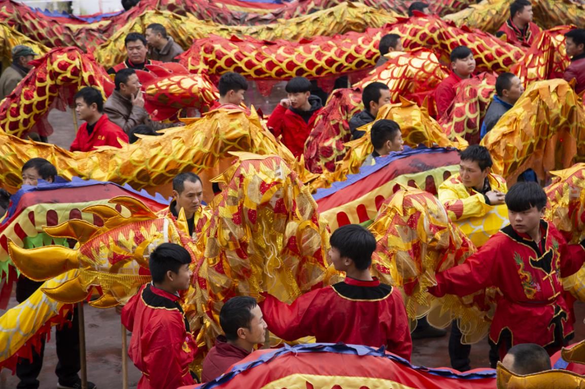 大部分人家都只是在庭院接龍,只有少部分人家會(huì)把龍請(qǐng)入中堂。龍燈在院中轉(zhuǎn)幾圈,然后跟隨牌燈進(jìn)入中堂。首先主人需要祭拜龍燈,才開(kāi)始喊祈福的偈子。同時(shí)主人要更換牌燈和龍燈的香燭。玩龍燈有許多禁忌,龍是順著進(jìn)門(mén),倒著出門(mén)。