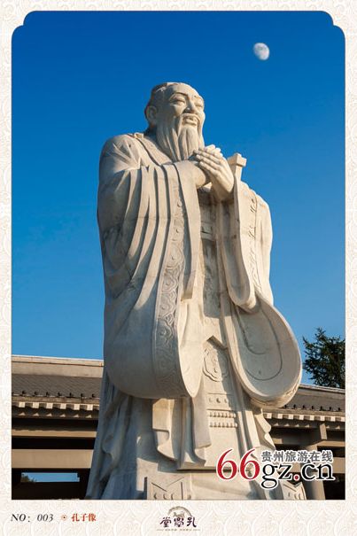 孔學堂背倚大將山,俯瞰花溪河,建筑面積12萬平方米。一期工程于2011年7月3日奠基,2012年9月28日即孔子誕辰2563周年紀念日落成揭幕;二期工程于2013年10月開工,將于2014年11月竣工。