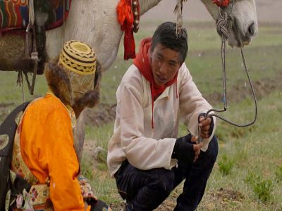 圖片名稱:賽馬冠軍在雨中訓(xùn)練兒子的騎術(shù)